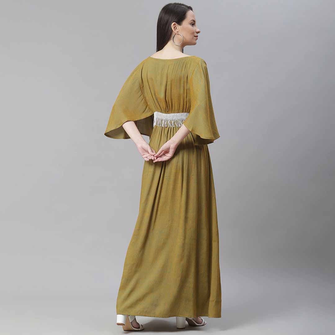 bell sleeved embellished maxi dress looking for some awesome collection of dresses? well, lay your hands on this dress from cottinfab and also get the option of choosing from yellow colour. dress up in a soothing pattern and don this dress made of rayon material. satiate your love for dresses by grabbing s size priced at ₹1389 .