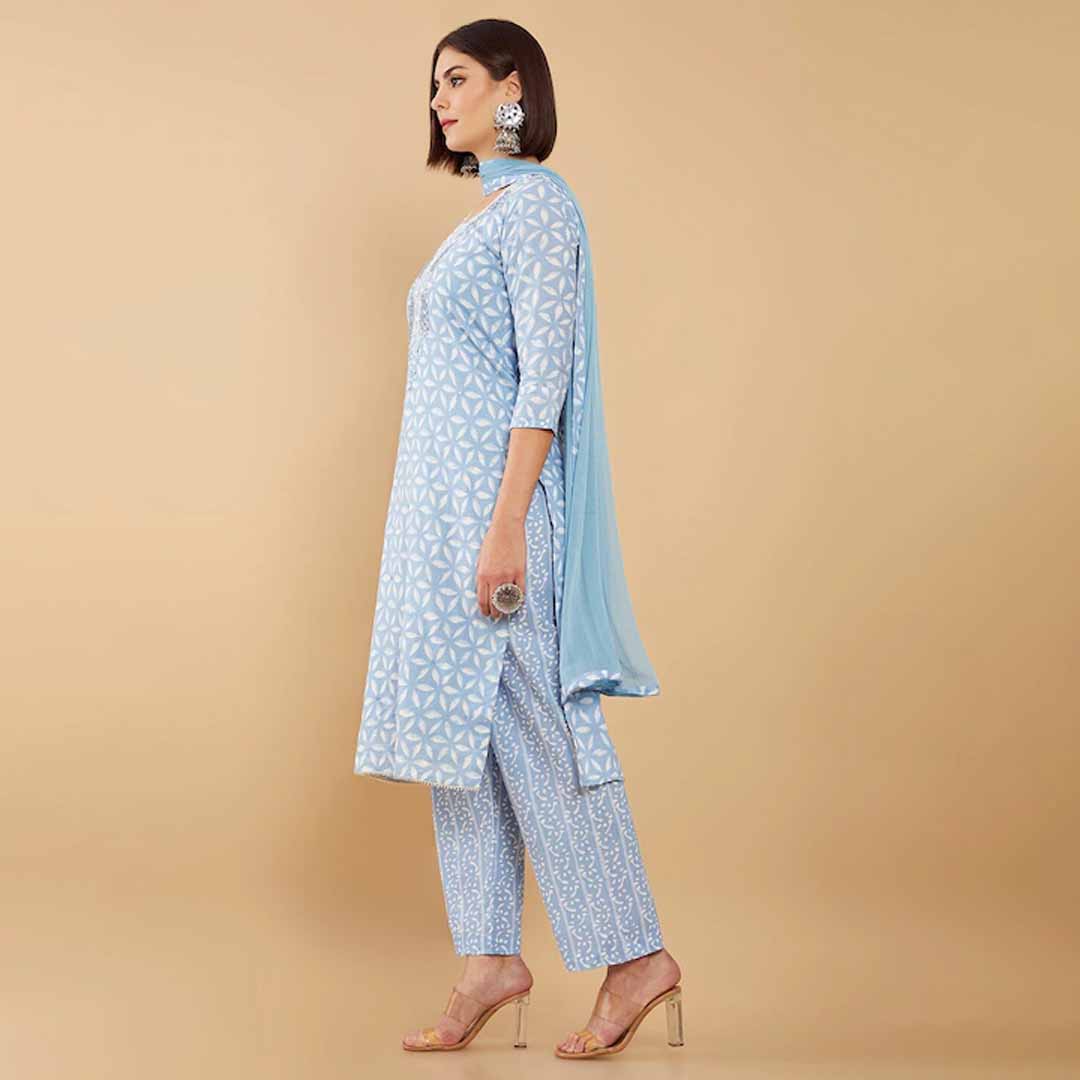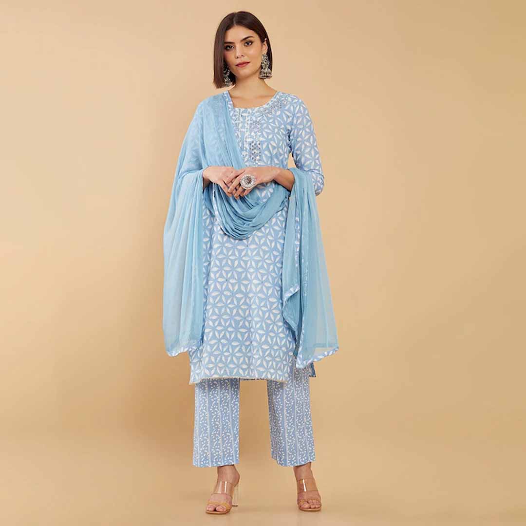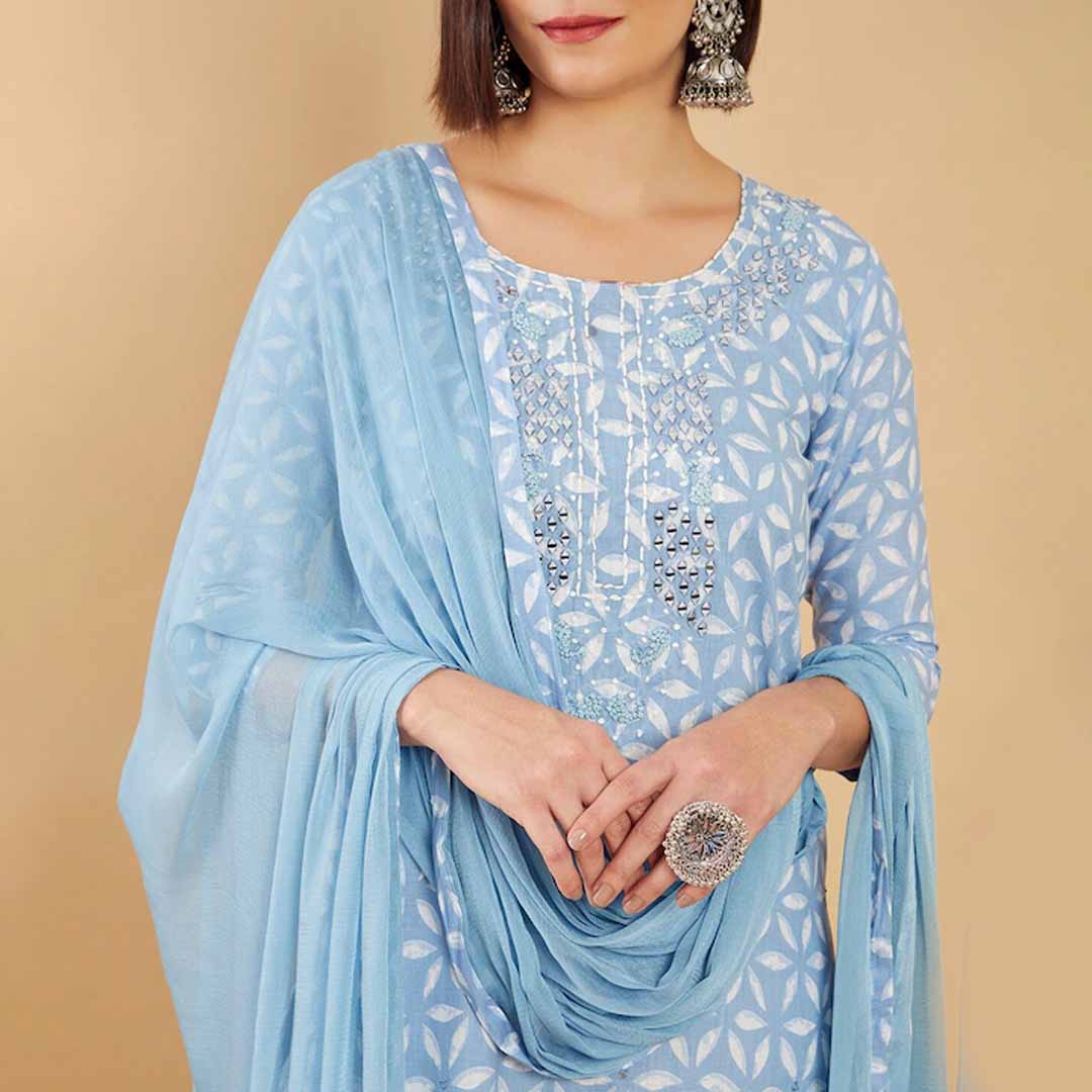 Size & Fit Top Fabric Length - 2.5 Meter, Bottom Fabric Length - 2.5 Meter, Dupatta Length - 2.25 Meter Material & Care Cotton Blend, Hand Wash