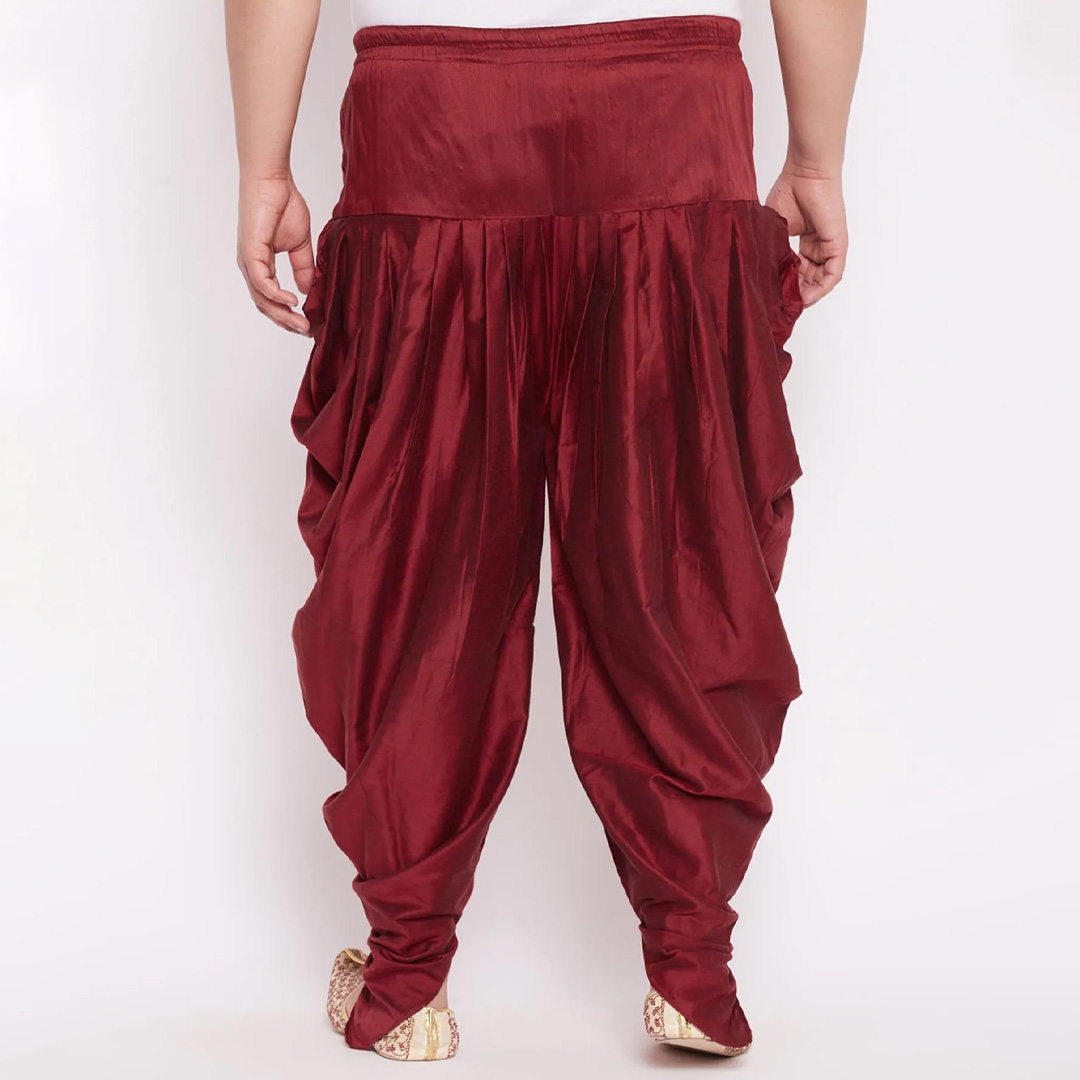 Fabric: silk blend | contents: a men's plus size cotton silk cowl pattern patiala style dhoti pant with uniform chunnar (drapes) for an amazing fit and fall.