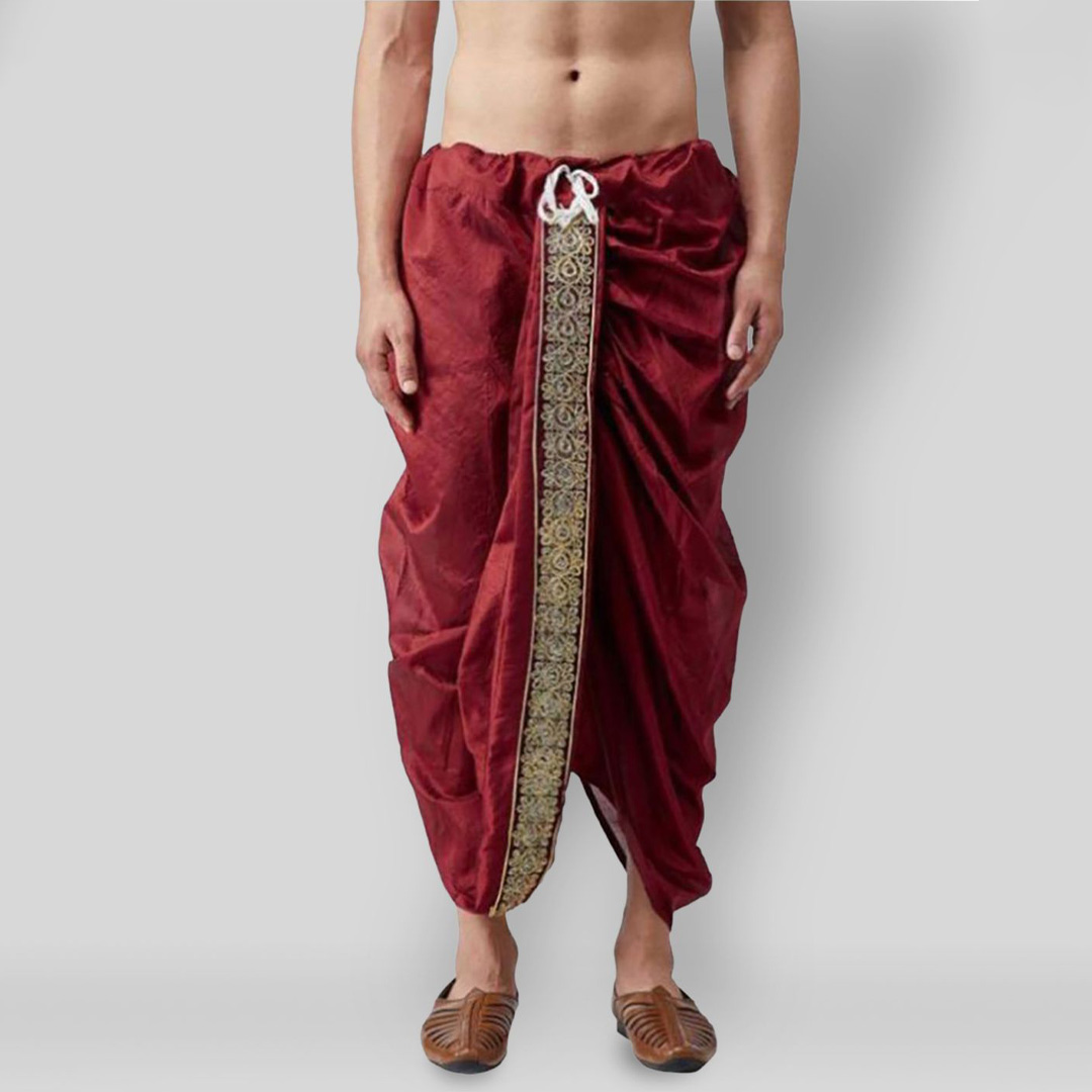 Men's ready-to-wear Dhoti. It is made of silk dupion fabric with a designer look giving it a traditional ethnic look.
