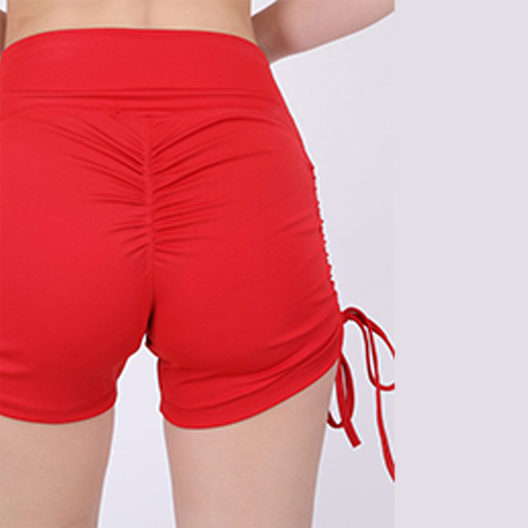Red solid gym shorts, elasticatd waist, has tie up detail