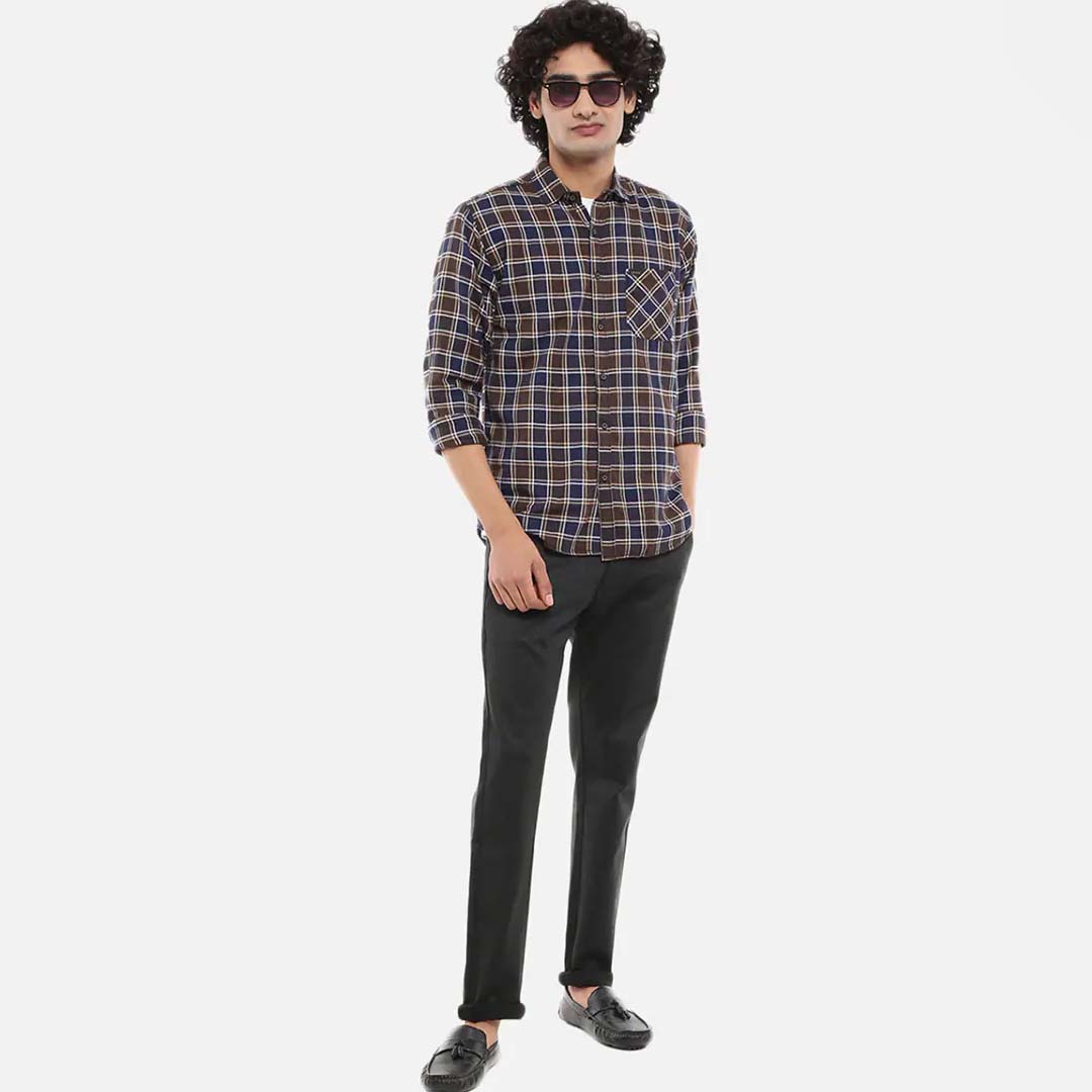 level up your wardrobe essentials with this stylish pair of slim fit trousers from arrow. the cotton spandex blend fabric of the trousers ensures an impeccable fit and comfort. match them with a solid t-shirt and your favourite pair of sneakers for a relaxed, casual look.