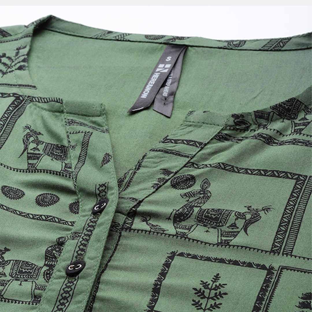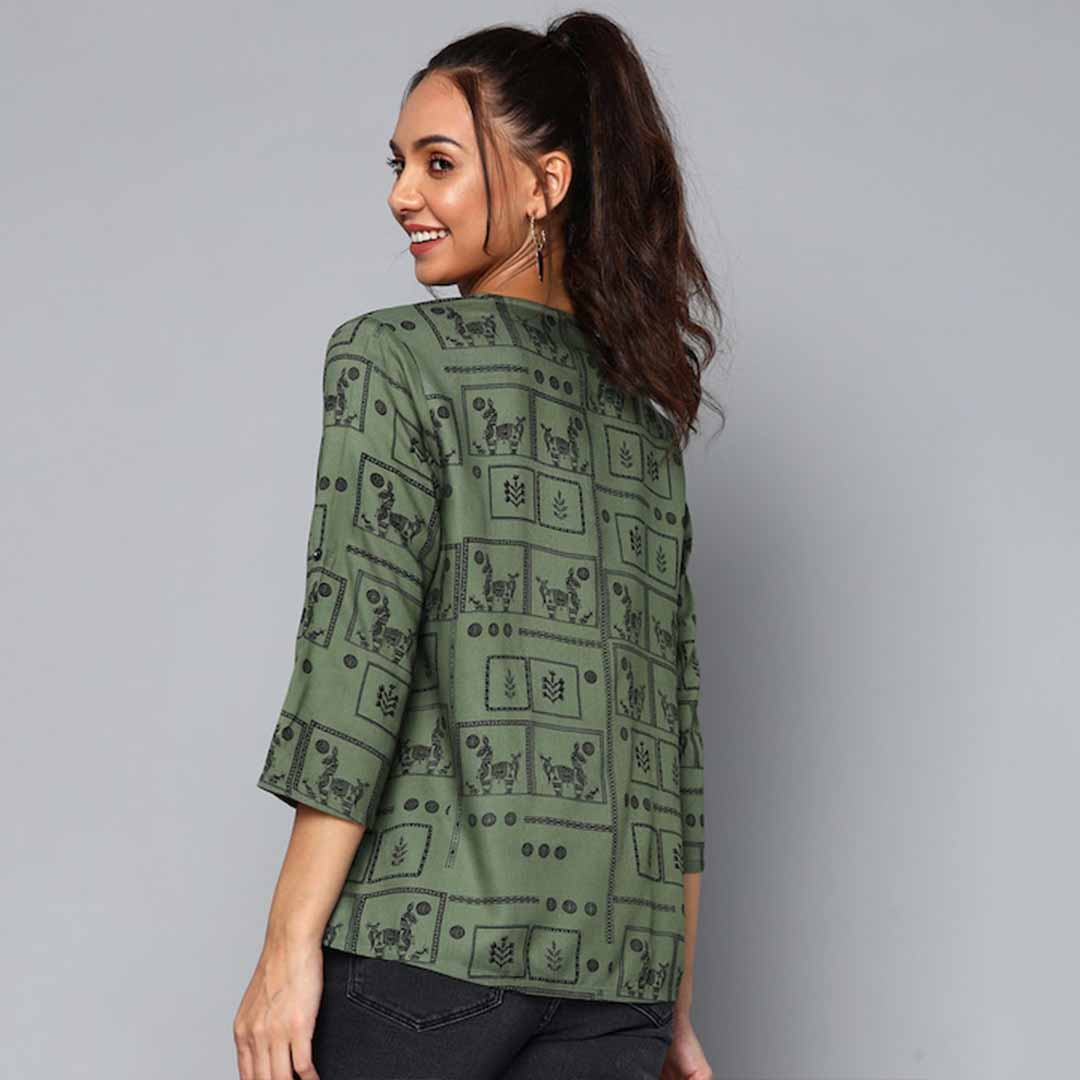 Olive green and black regular top